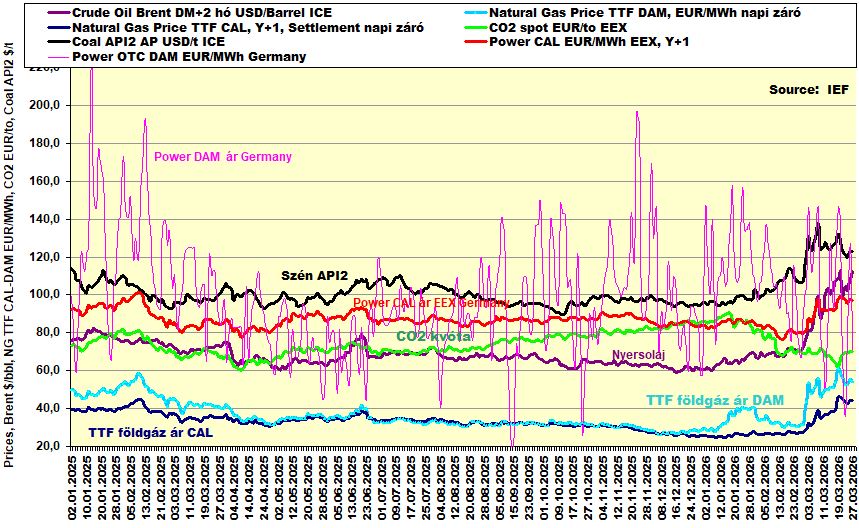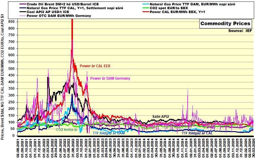 Az adott fejezeten belül aktuálisan követjük a európai kontinentális energiapiacon meghatározó termékárakat, úgy is mint:
