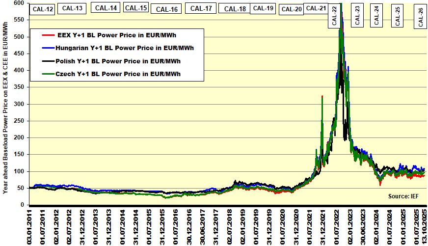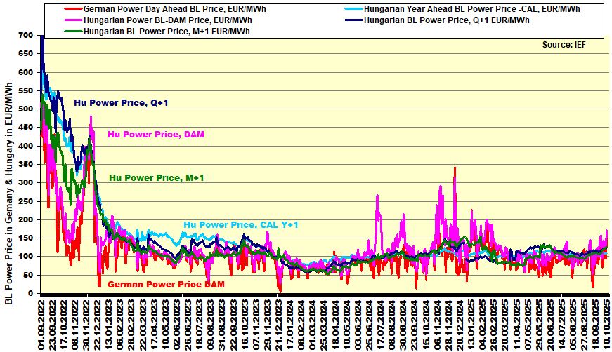 Az alábbi ábra a villamos energia rövid-, közép- és éves termékárait mutatja hazánkban és a német tőzsdén (EEX -DAM -következő napi). Ezek az árak segíthetik a rövidtávú 1-3 havi és a negyedéves beszerzési árak megítélését a hazai fogyasztóknak.