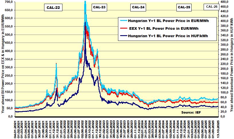 A hazai és német következő évi zsinór éves termékek (CAL) árak forintban és euróban 2021-tól.