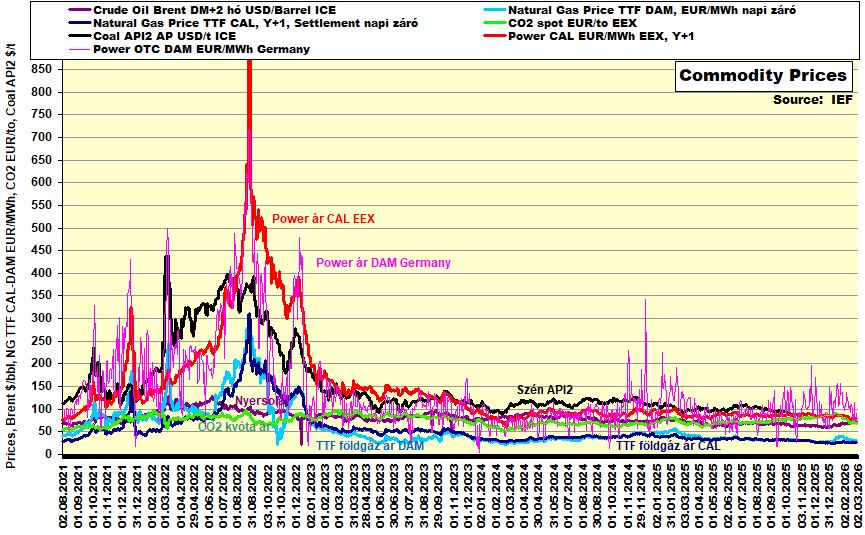 A fenti grafikonok részletesebben a honlapunk Villamos energia, Földgáz felületén és az Emea commodity/energia árak alatt található